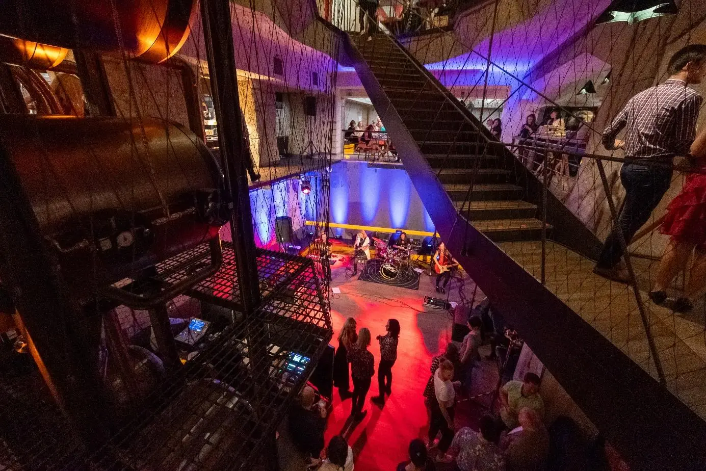 Červený Jelen je rozprostřen do tří pater unikátně propojených kubistickou „dírou“, která zajišťuje, že z každého místa je host zapojen do dění. Dominantou je nejvyšší pivní věž na světě z dvanácti tanků plzeňského piva, jež prostupuje všechny tři patra restaurace.